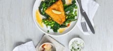 Lägg upp den rökta laxen på de marinerade svarta bönorna och strö över äppelklyftor och parmesan. Garnera med färsk dill.