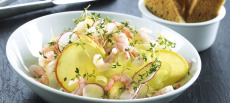 Marinera de kokta svarta bönorna i olivolja, rivet citronskal och saft och finhackad schalottenlök. Skär äpplena i grova bitar och marinera dem med citronsaft.